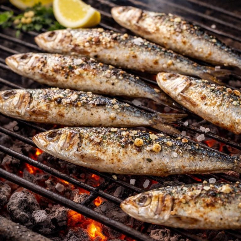 Nuestro churrasco de cerdo y  sardinas con un maravilloso sabor a brasa.